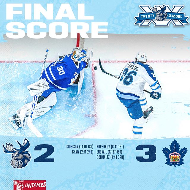 Moose fall 3-2 to the Marlies. Rematch tomorrow at 2PM