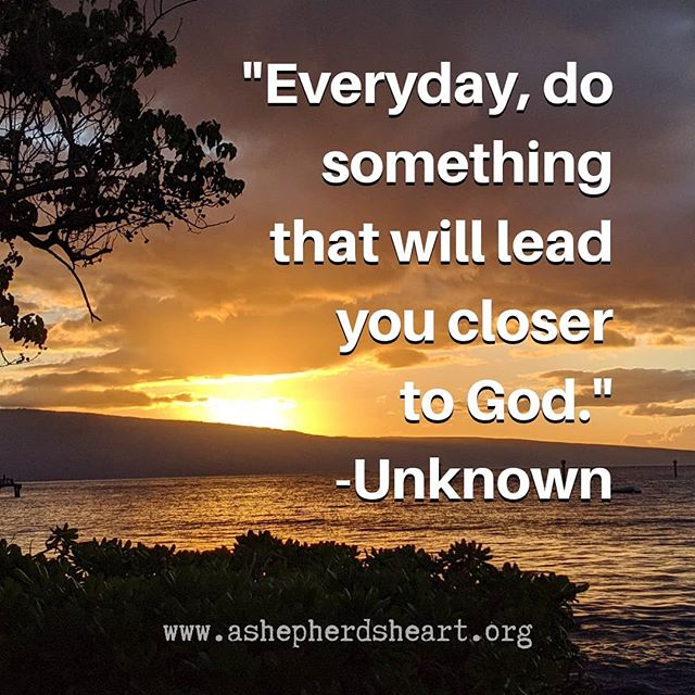 Here's a quote I saw recently and wanted to share it with you: "Everyday, do something that will lead you closer to God." -Unknow