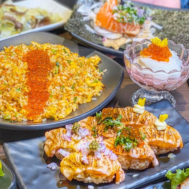 ????山藥細麵咕滑滑的滑嫩口感和蔥花鮭魚捲都好開胃!鮭魚炒飯拌入魚卵更鮮。